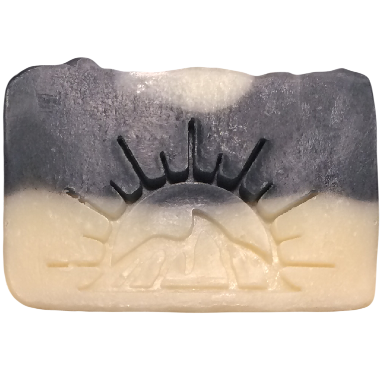 Ingredients: Saponified oils of Olive, Coconut, Palm, Palm Kernel; Essential oils of Lavender, Cedarwood, Lime, Rosemary; Powdered Black Walnut Hull; Cocoa Powder; Tussah Silk.