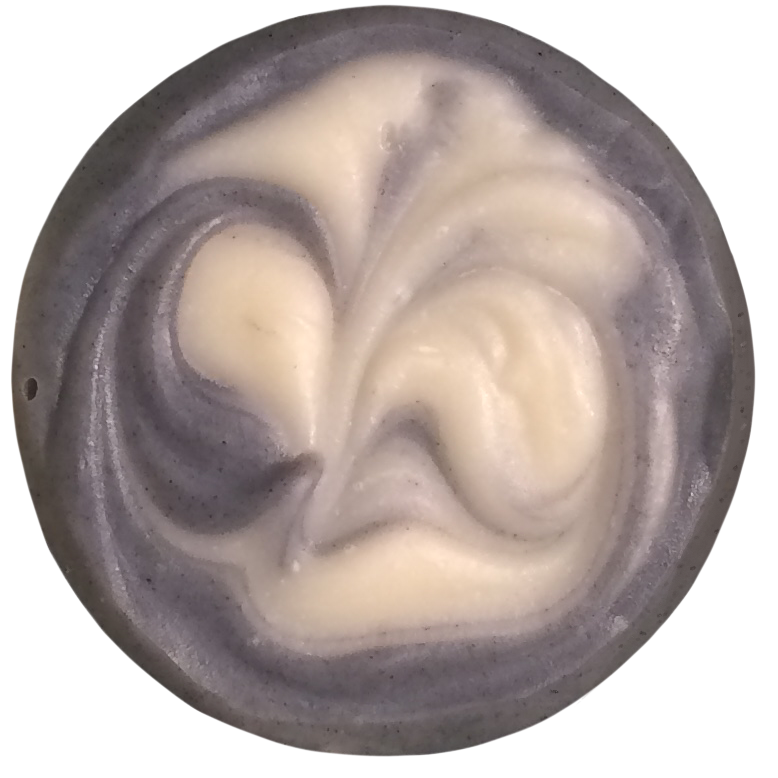 Ingredients: Saponified oils of Olive, Coconut, Palm, Palm Kernel, Castor; Essential oils of Lavender, Anise; Titanium Dioxide; Activated Charcoal Powder; Tussah Silk.