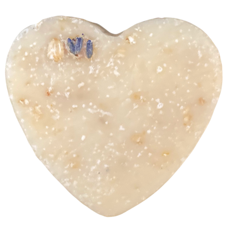 Ingredients: Saponified oils of Olive, Coconut, Palm Kernel, Castor; Lavender essential oil; Ground Oats; Lavender Buds; Tussah Silk.