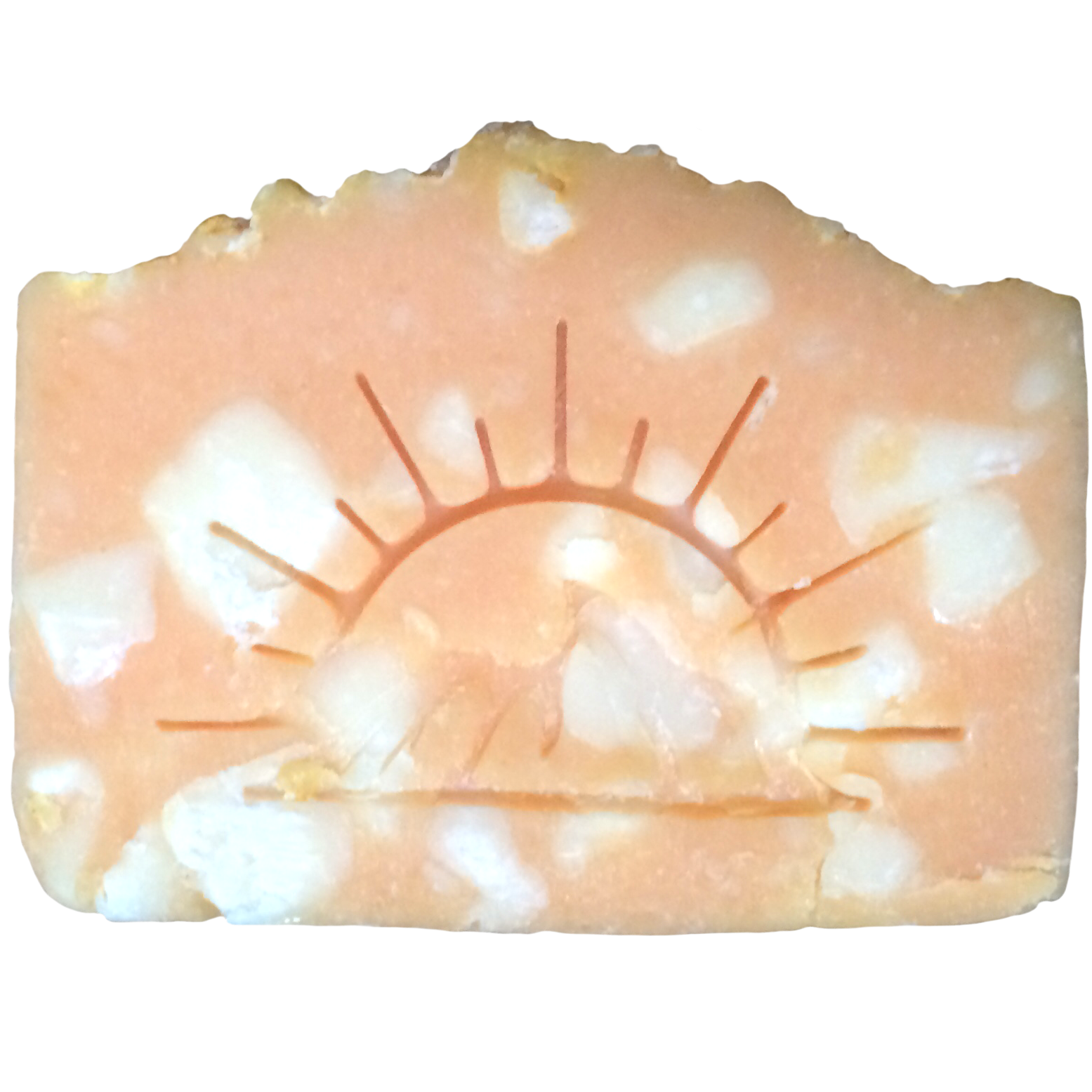 Ingredients: Saponified oils of Olive, Coconut, Palm, Castor; Essential Oils of Grapefruit, Sweet Orange, Orange; Calendula Petals; Ground Turmeric; Tussah Silk.